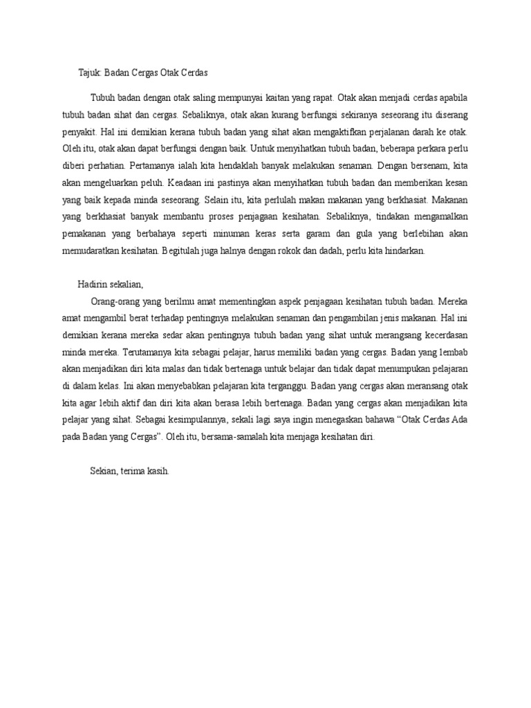 Contoh Ayat Otak Yang Cerdas Lahir Dari Badan Yang Sihat